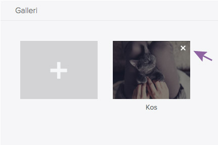 Ønsker du å slette et bilde så hold musen over bildet du ønsker å slette og det vil vises en X for sletting i høyre hjørne.