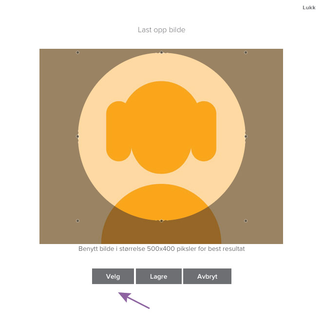 Er du ikke fornøyd med bildet eller ønsker et annet, klikk «slett» og gjør samme prosedyre igjen for å velge et nytt bilde.