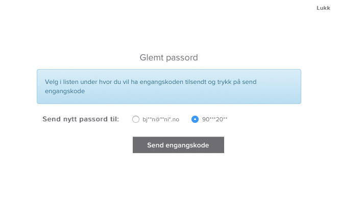 Velg og kryss av for om du vil ha sikkerhetskoden sendt til e-postadressen din eller på SMS.